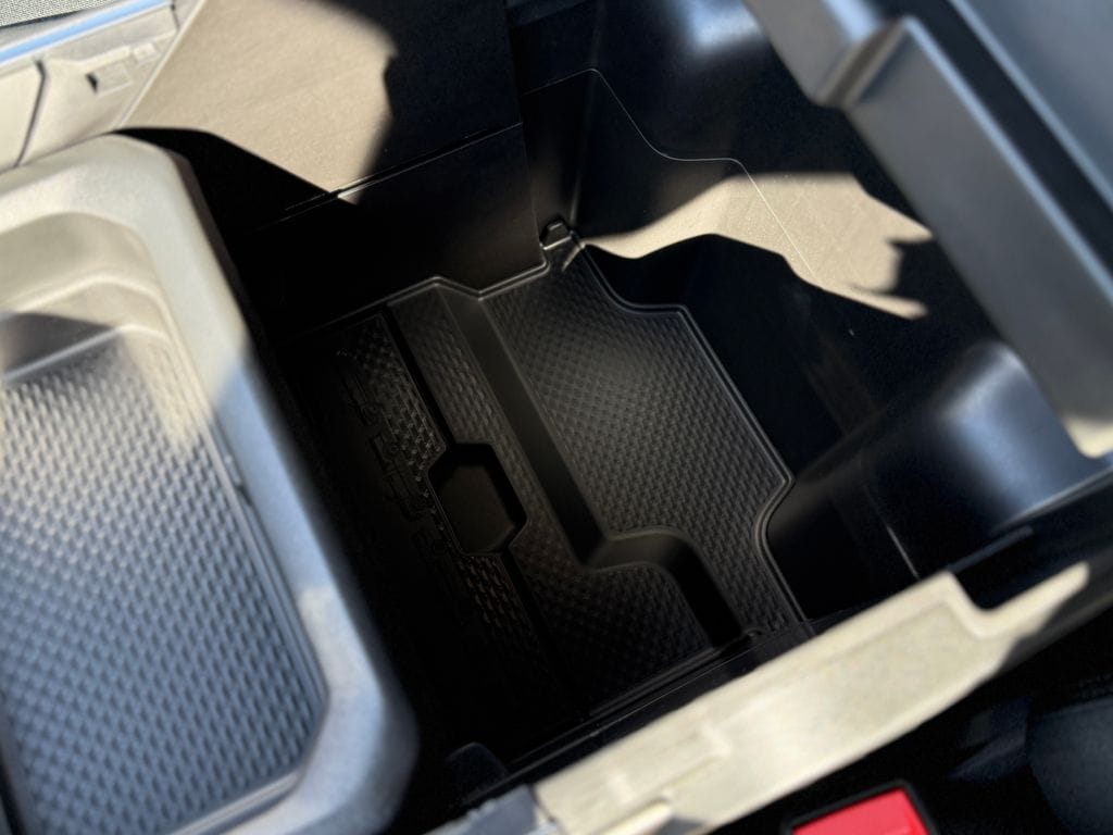 Floor console storage Covered floor console storage